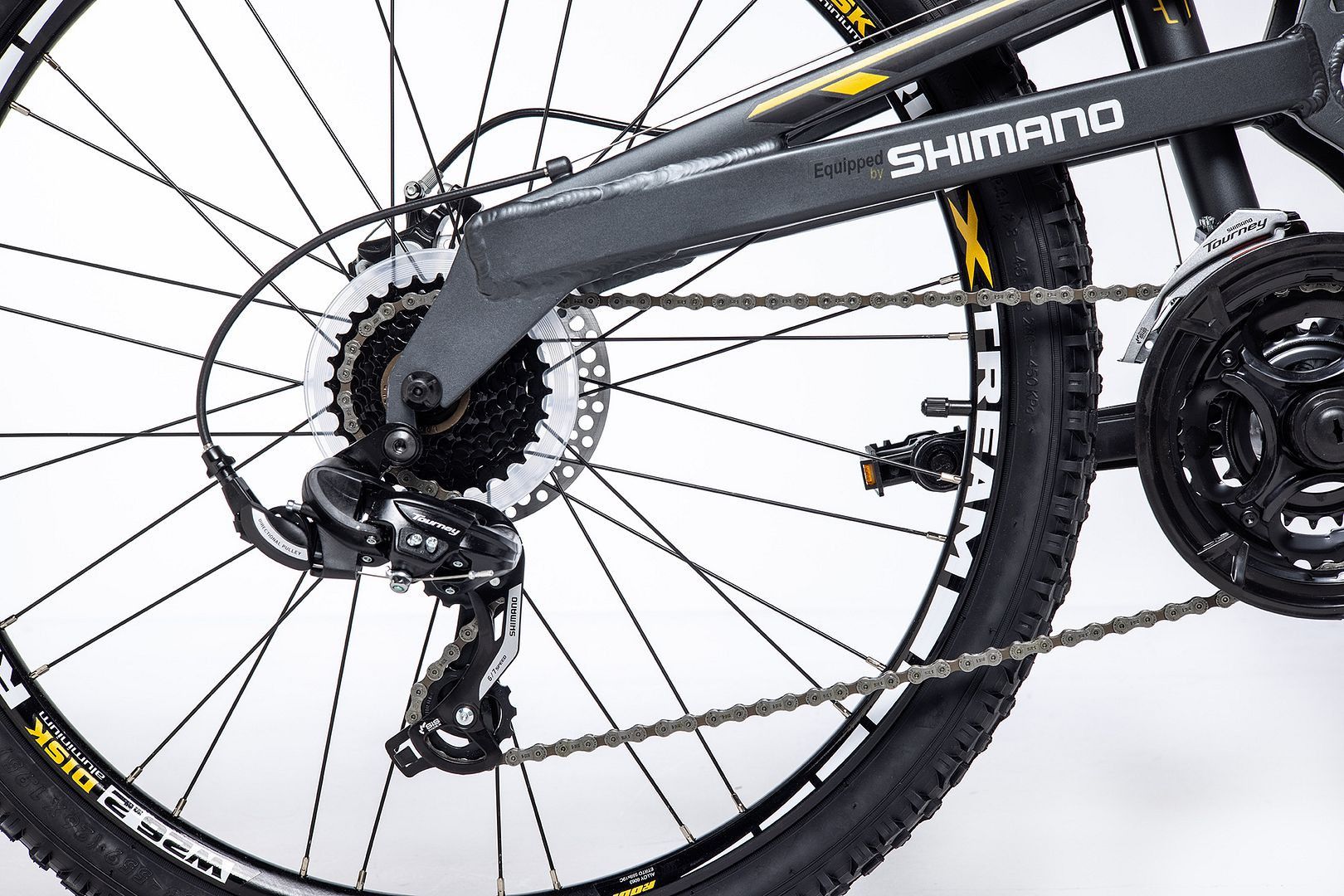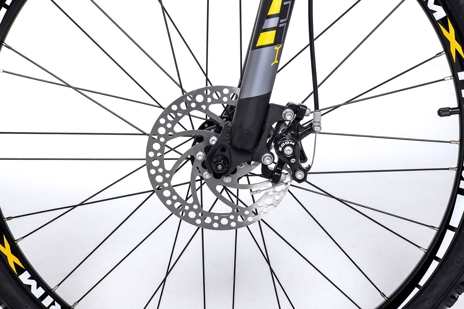 Équipé d’une transmission Shimano 24 vitesses, ce VTT permet une grande flexibilité pour gérer les différents types de terrain que vous rencontrez. La transmission Shimano est connue pour sa précision et sa fiabilité, vous permettant de changer de vitesse de manière fluide et sans effort. Vous pouvez facilement adapter votre conduite aux montées, descentes, et sections planes.