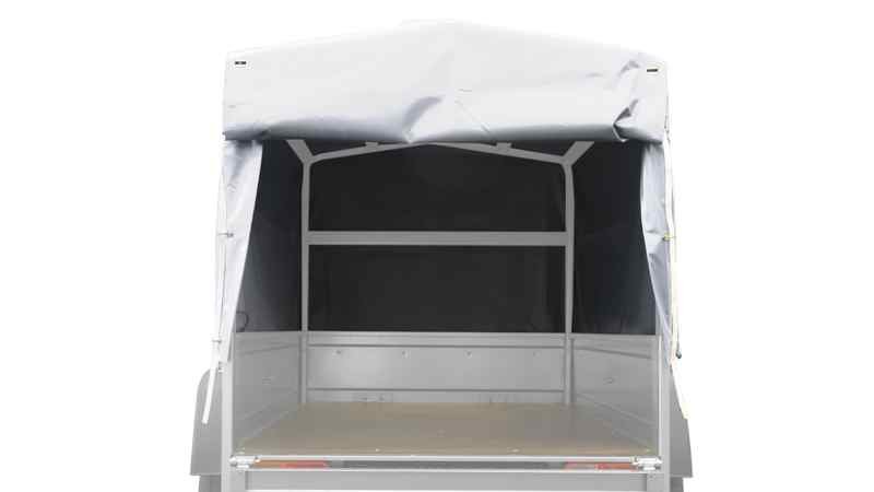 Remorque 1 essieu Garden Trailer 150 KIPP avec bâche haute, arceau et roue jockey