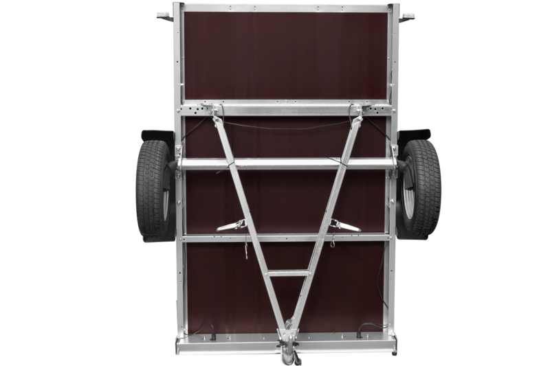 Grâce au timon pliable, vous pouvez charger ou décharger la cargaison beaucoup plus facile que normalement. Cette solution est également utilisée dans les remorques plus chères. Un autre des avantages de cette solution est la possibilité de stocker la remorque dans une position verticale avec un timon plié, debout à l’arrière. Vous n’avez donc pas à vous soucier que la remorque prenne beaucoup de place dans le garage ou ne rentre pas à cause du timon trop long. Vous pouvez la mettre même sur la façade du bâtiment !