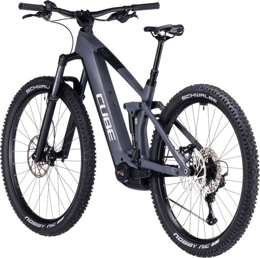 VTT Électrique Tout-Suspendu Cube Stereo Hybrid 140 HPC Race 750 Shimano Deore XT 12V 750 Wh 29” Gris Chrome 2024