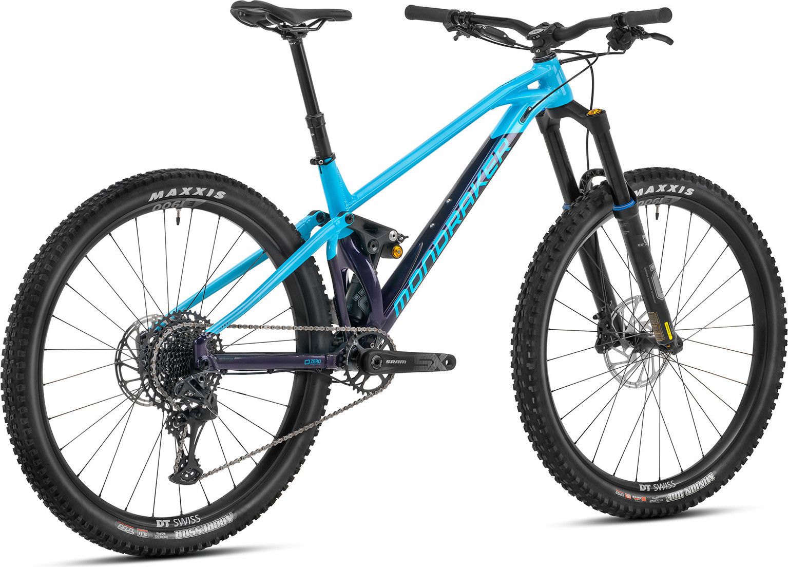 Le VTT Tout-Suspendu Mondraker Foxy R se distingue par son design bleu et violet moderne et élégant, attirant les regards tout en reflétant la performance. Ce design n’est pas seulement esthétique, mais il met également en valeur la qualité du vélo. Les couleurs vives et le style contemporain ajoutent une touche sportive et dynamique au modèle.